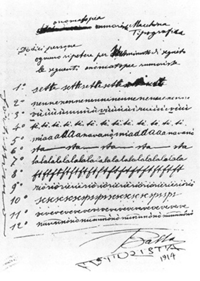 Sound poem images are from Macchina tipografica (Printing Press) by Giacomo Balla